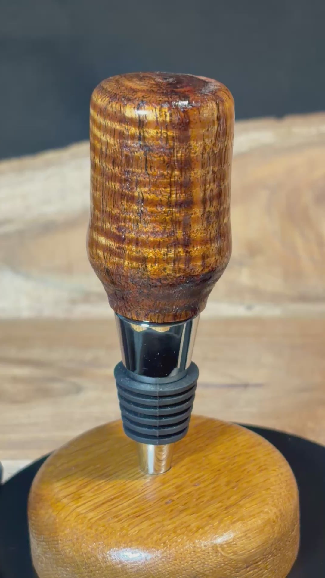 No two stoppers are the same. Variations in color, grain, and figure are part of the material and are intentionally left visible rather than corrected or hidden. This is a functional object first — made to be used — with the character that comes from real wood and careful handwork.